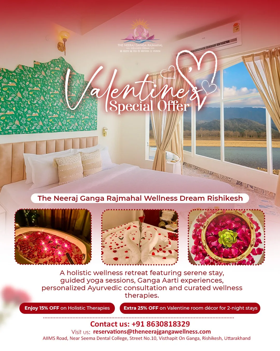 The Neeraj Ganga Rajmahal Wellness Dream offers a serene hotel stay near the Ganga in Rishikesh. Friendly staff, cozy rooms, fresh healthy food and soothing wellness experiences make it ideal for a peaceful and relaxing getaway